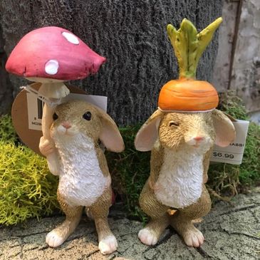 Lions, Tigers and Bears, oh my! Actually, while we do have bears, the majority of our critters are cute and whimsical. Squirrels, hedge hogs, rabbits, turtles, frogs, lizards, to name a few. They bring joy to your home, deck or porch. Come in and smile.
